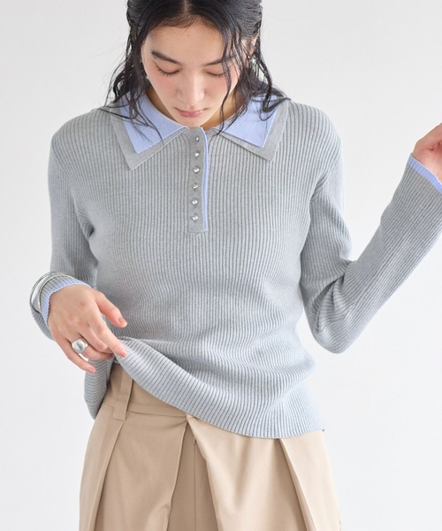 《美得プライス》 女性らしさ・スタイルアップ・上品さを、手に取りやすいプライスで叶えるVISの「美得プライス」トップス。【2026 Spring】【26SS】リブ編みで女性らしく仕上げた今年らしいダブルカラーポロニットトップス。春素材になりNEWカラー登場!<POINT>・トレンドのダブルカラーデザインを取り入れたポロニットで1枚で今年らしいスタイリングが完成。・リブ編みで身体のラインを綺麗に見せてくれます。・フレア袖で華奢に見せてくれます。【デザイン・シルエット】トレンドのダブルカラーデザインのポロニットトップス。女性らしくスマートなシルエットで拘りました。オンオフで使えるよう上品さを残しつつ1枚でトレンド感を抑えられるのも嬉しいポイント。これからのシーズン羽織ものを着てもアクセントになるおすすめアイテムです。ボタンをとめるとクラシカルな印象に。【素材】モチっとした柔らかい素材を使用しています。【カラー】チャコール、ライトグレー、オフホワイトの3色展開。【おすすめのスタイリング】ジャケットのインナーに合わせてトラッドな雰囲気でスタイリングするのがおすすめです。綺麗めなスラックスはもちろんデニムなどカジュアルなアイテムとの相性もぴったりです。-----------------------------裏地:なし光沢感:なし透け感:なし伸縮性:ありボタン:胸元部分あり(開閉可)生地の厚さ:普通季節:春、秋、冬-----------------------------【モデル着用サイズ】身長:168cm 着用サイズ:F※前回好評だったダブルカラーポロニットトップス(品番:BVM45240)と同型。【前回のダブルカラーポロニットトップス(品番:BVM45240)との違い】・カラー展開。ブラウンに変わり新たにライトグレーが登場。※画像の商品はサンプルです。実際の商品と仕様、加工、サイズが若干異なる場合がございます。※画像によっては実際の色味と異なる場合があります。正しい色味は生地アップ画像をご確認ください。
