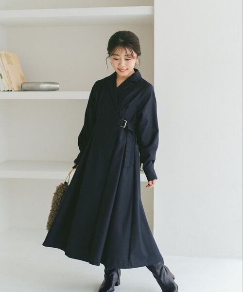 高めウエスト切り替えでスタイルアップ、1枚で決まるクラシカルワンピ【DESIGN】クラシカルなムードを演出するテーラードカラーワンピース。生地を贅沢に使うことで動くたびに揺れてドラマティックなシルエットに。高めに設定したウエスト切り替えで自然とスタイルアップも叶います。サイドのウエストベルトで絞り具合が調節でき、シルエットのアレンジも可能。バックルやボタンはゴールドでさりげなく華やかさをプラスしています。内側もボタンで留まる仕様なので、安心して1枚で着用いただけます。【FABRIC】適度なハリとしなやかな落ち感が上品な生地を使用。見た目以上に軽やかな着用感もポイントです。【STYLING】1枚でエレガントなスタイルが決まるワンピースは、きちんと洗練された印象を演出してくれる優秀なアイテム。デイリーからオフィススタイルはもちろん、お食事会などちょっとしたイベント事にもぴったりです。足元はショートブーツとのバランスが好相性。ロングブーツを合わせたスタイリングも新鮮でおすすめです。【STAFF着用コメント】-----------------------------------------------YUNA 148cm 普段サイズ:XSB:72 W:63 H:88 股下:68 体型:細身-----------------------------------------------着用サイズ:regular上品なディテールが満載のレディワンピースです♡身長148cmでスネからふくらはぎあたりの丈なので大人っぽく着ることができました!襟から続くカシュクールと、ウエストベルトのデザインのおかげで、上半身はスッキリ・シェイプした印象に見せてくれます!着痩せ効果◎!下半身はふわっとひろがるシルエットで、体型カバーも叶えてくれます。着るだけで大人っぽくきまる最高のワンピースです!◾️キーワード小さめ、小さい、小さいサイズ、低身長、低身長向けサイズ、小柄サイズ、小柄、小柄女性、ベーシック、キレイめ、オフィスカジュアル、キレイめフェミニン《COHINA STORE》COHINA STOREは身長150cm前後の小柄女性のためのアパレルブランドショップです。カジュアルコーデもフェミニンも。ここに来れば「こんなの探してた!」が見つかる。それがCOHINA STOREです。小柄さんが一番美しく見える、ぴったりサイズのお洋服を提供します。