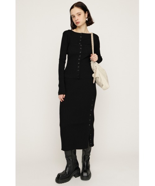 ■POINT スカート・ビスチェ・トップスの3ピース仕様で、セットでも単品でも着回しが楽しめるアイテム。 縦ラインを活かしたロングシルエットで、すっきりとした大人の抜け感を演出します。 ブラック/トップグレーの落ち着いたカラー展開で、デイリー使いからきれいめシーンまで対応します。 ■DETAIL ビスチェはウエストマークが効くコンパクトな設計で、単品でのコーディネートもしやすいバランス。 トップスはボートネック仕様で、顔周りがスッキリと着こなしに変化をつけられます。 スカートは程よいフィット感で女性らしい曲線をキープしつつ、リブ編みなので動きやすさも確保。 セットで着るとワンピースのような完成度に。 ■STYLING セット着用はそのままワンピース風のワンマイルお出かけルックに最適。 ヒールで引き締めるとドレスライクに、スニーカーやブーツで合わせるとカジュアルダウンした印象に。 ビスチェのみをデニムやシャツの上に重ねるレイヤードスタイルもおすすめです。 ジャケットやロングコートとの相性もよく、シーズンレスで活躍するアイテムです。 ■FABRIC/MATERIAL 程よい肉感でシルエットを美しく保ちつつ、日常使いに適した伸縮性のあるリブニット素材。 ■透け感:なし ■光沢感:なし ■伸縮性:部分的にあり ■裏 地:なし [注意事項] ※画像の商品はサンプルです。実際の商品と仕様、加工が若干異なる場合があります。 ※画像の商品は光の照射や角度、お使いのモニター環境により、実物と色味が異なる場合がございます。 ※着用、お取り扱いの際は、アテンションタグをご確認ください。 ※一部予約商品につきましては生産上の都合によりお届け予定日や店頭発売と前後する場合もございます。 ※追加生産商品は、一部の店舗、通販で販売中の場合がございます。予めご了承下さい。 【SLY/スライ】 「Casual」「Girly」「Mode」をベースに発信する、ディテールへのこだわりが詰まった、どこか必ず女性らしさを感じるアーバンスタイル。 さまざまなエッセンスをミックスした、時代の空気を体現するコレクションを展開。 ▼商品のお気に入り登録 お気に入りアイテムの値下げ・再入荷・在庫1点などの通知を受け取ることができます。 ▼ブランドのお気に入り 登録新商品や再入荷、セール、クーポン配布などお得な情報を受け取ることができます。 ※こちらの商品はSLY独自の採寸方法となっています。本サイトのサイズガイドと採寸方法が異なる場合がありますのでご了承ください。
