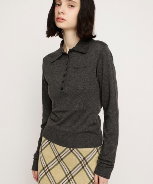 ■POINT 斜めにデザインされた前立てが、SLYらしい遊び心溢れるポロ襟ニットトップス。 ウエストまわりがスッキリと見えるジャスト丈がボトムスを選ばないアイテムです。 ベーシックながら、スタイリングの主役になる1枚です。 ■DETAIL 落ち感のあるハイゲージ天竺ニットを使用し、カジュアルすぎない上品な印象を与えるアイテムです。 ポロ襟デザインで開けて着用すればコーディネートに抜け感をプラスします。 SLYオリジナルで作成した配色ボーダーが主役になるマルチブルーと無地グレーの2色展開です。 ■STYLING デニムなどカジュアルなアイテムとのスタイリングはもちろん、ミニボトムスとロングブーツでガーリーなスタイリングもおすすめです。 ■FABRIC/MATERIAL 伸縮性のある天竺ニットを使用しています。 [注意事項] ※画像の商品はサンプルです。実際の商品と仕様、加工が若干異なる場合があります。 ※画像の商品は光の照射や角度、お使いのモニター環境により、実物と色味が異なる場合がございます。 ※着用、お取り扱いの際は、アテンションタグをご確認ください。 ※一部予約商品につきましては生産上の都合によりお届け予定日や店頭発売と前後する場合もございます。 ※追加生産商品は、一部の店舗、通販で販売中の場合がございます。予めご了承下さい。 【SLY/スライ】 「Casual」「Girly」「Mode」をベースに発信する、ディテールへのこだわりが詰まった、どこか必ず女性らしさを感じるアーバンスタイル。 さまざまなエッセンスをミックスした、時代の空気を体現するコレクションを展開。 ▼商品のお気に入り登録 お気に入りアイテムの値下げ・再入荷・在庫1点などの通知を受け取ることができます。 ▼ブランドのお気に入り 登録新商品や再入荷、セール、クーポン配布などお得な情報を受け取ることができます。 ※こちらの商品はSLY独自の採寸方法となっています。本サイトのサイズガイドと採寸方法が異なる場合がありますのでご了承ください。