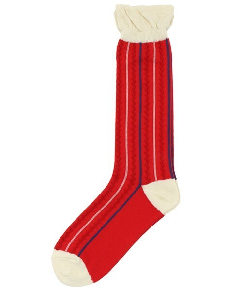 細いストライプが特徴の靴下です。ふくらはぎより下の丈感です。 名前の由来はピンタック上の編み地になっているところから由来しています。