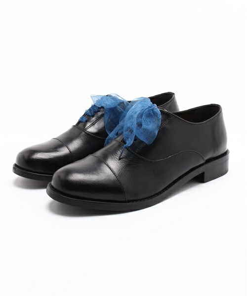 ひも、リボン、ひもなしの3way仕様革靴。 丸みのあるクラシックな形の木型を使い内羽根仕様のストレートチップシューズを作りました。靴紐を付けないでも履けるように中にゴムが入っています。オーガンジーリボンとロウ引き紐の付いた3WAYです。