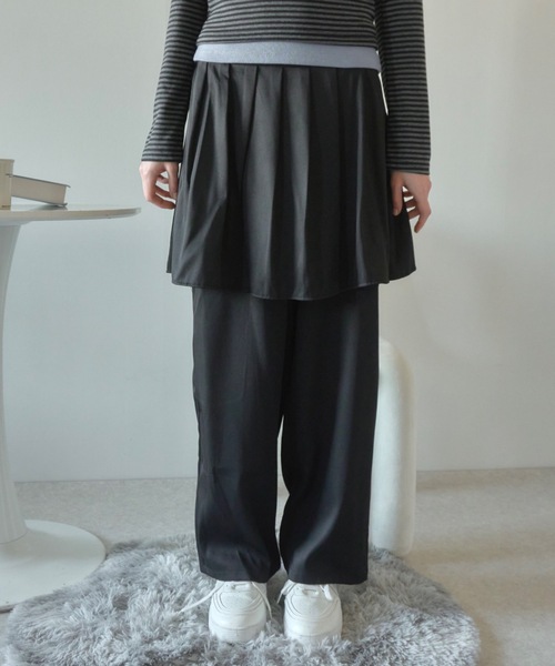 Birthdayroom NEW ARRIVAL TREND ITEM! 《プリーツスカート見えする、洒落感レイヤードパンツ♡》トレンドのレイヤードスタイルが即完成!プリーツスカートを重ねたようなデザインがポイントのワイドパンツ。ふんわり揺れるスカート部分と、ストンと落ちるパンツシルエットのバランスで、ガーリーにもモードにも着こなせます。ウエストは総ゴムで着脱らくちん&ストレスフリー。体型カバーも叶う優秀ボトムは、スウェットやニットを合わせてゆるカジュアルにも、ブラウスで甘めコーデにも◎ --- POINT --- ・スカート×パンツのレイヤード風デザイン・揺れ感が可愛いプリーツ風スカート・ウエストゴム仕様で履き心地◎・体型カバーとトレンド感を両立・コーデの幅が広がるシンプルカラー展開 --- FABRIC ---●素材:ポリエステル100%●裏地:なし●透け感:なし●伸縮性:あり(パンツ部分)●生地の厚さ:中肉●カラー展開:ブラック/グレー --- SIZE ---FREE総丈:78cmウエスト:68〜cm(ゴム仕様)股上:18cm股下:60cmスカート丈:41cm --- ATTENTION --- ※本製品はスカート部分にプリーツ加工を施しておりません。プリーツの立体感を出す場合は、お手元に届いた状態からスチームアイロンやアイロンプレスで整えていただくことを推奨いたします。※着用・洗濯を繰り返すことでプリーツが緩くなる可能性がありますので、お取り扱いにはご注意ください。※商品の色味は撮影環境やモニターにより若干異なる場合がございます。 --- INFORMATION ---〈商品のお気に入り登録〉ハートマークを押して再入荷通知をONに♡気になるカラーはお気に入りしておくのがおすすめ! --- Birthday room / バースデイルーム ---トキメキを詰め込んだロマンティックな世界観毎日がバースデーのような「特別なギフト」をあなたに。