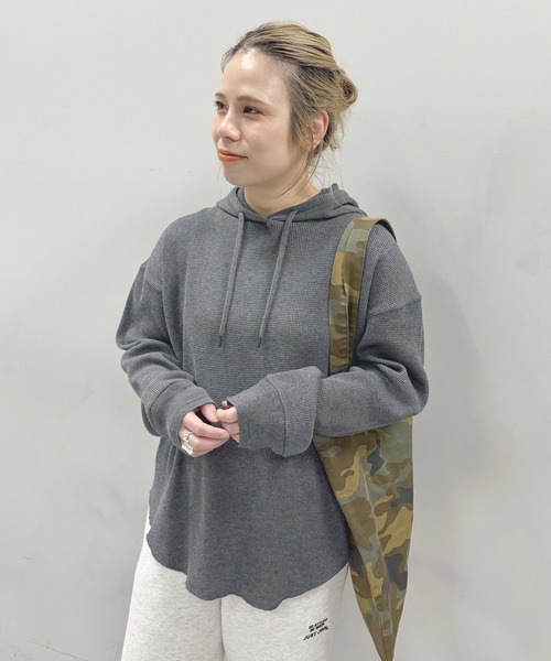 ●商品のお気に入り登録クーポンやタイムセール、再入荷通知やラスト1点などお得な情報を受け取ることができます。ご登録をお忘れなく◎◇ピュアルセシン スタッフ【@yns628】企画/フードを見せる重ね着の新提案◎◇カラーの小物使いからレイヤードまで。着合わせのアレンジが光る、バランスの良いカジュアルコーデが得意な人気スタッフ【@yns628】が企画。新しいレイヤードスタイルを楽しめるワッフルレイヤードパーカーを考案しました!●デザインレイヤードコーデをしやすいようにこだわりを込めたプルオーバーパーカー。ワッフル素材の凹凸ある表情豊かな表面で、重く見えがちなパーカーをライトな雰囲気に魅せる1着。ラウンドした裾は長めに設定し、重ね合わせるトップスの丈を問わず、大人のこなれ感が簡単に生まれるこだわりのサイズ感に仕上げました。少しコンパクトなフードが、バックスタイルに立体的なアクセントをつけ大人カジュアルにマッチするキャッチーなポイントに。編み立てリブの袖口はリラクシーな雰囲気漂うデザインをさり気なく引き締めます。着心地抜群な柔らかくふわっと身体に沿う絶妙なフィット感も魅力的。シンプルなデザインの中にこだわりのディテールを込めたアイテムは、コーディネートに馴染みやすく、冬の着こなしの幅をグッと広げる1枚です。●スタイリングスウェットやニットなどとのレイヤードスタイルがオススメ。ショート丈のトップスとならラウンドした裾が360度全てから覗いておしゃれ見え。ミディ丈のアイテムからは、裾がチラ見えしてこなれ感がアップしたコーディネートに。オーバーサイズのシャツとのレイヤードもフードを見せて、都会的でマニッシュな雰囲気に仕上げられます。ボトムスには、デニムパンツやスウェットなどのカジュアルなボトムが好相性◎キャップなどの小物をプラスすれば、適度なリラックス感のある大人カジュアルスタイルにまとまります。●素材ワッフルのようなマス目の凹凸が特徴的な生地。さらりとしたソフトな肌当たりで快適に着用いただけます。===============================洗濯方法:手洗い/蛍光増白剤入りの洗剤は使用しないでください。透け感:なし裏地:なし伸縮性:あり光沢感:なし生地の厚さ:やや薄手【スタッフコメント】年齢:20代前半/身長:153cm/普段着用サイズ:S~Mサイズ着用感:153cmでヒップ周りを覆う着丈で着用でき、裾レイヤードも丁度良いバランス。ネックラインが詰まっているので、重ねたトップスからフードを綺麗に出すことが出来ました。秋冬にはレイヤードスタイルを楽しんで、春先にはこのアイテム1枚でと長く着まわせそうです。===============================※撮影場所やお使いのモニター環境により若干お色味が異なる場合がございます。特にロケの撮影では明るく見える傾向にございます。※予約商品はサンプルで撮影をしております。若干の仕様が変更になる場合がございますので予めご了承の上ご注文くださいますようお願いいたします 。※着用、お取り扱いの際は、商品についている品質表示とアテンションタグを必ずご確認下さい。【予約品の入荷時期について】店舗入荷時期と予約商品のお届け時期が異なる場合がございますので、予めご了承ください。