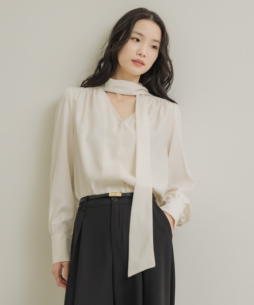 韓国オンニスタイルが叶う!◎フロントタイブラウスフロントで揺れるタイデザインが、上品さを引き立てる主役ブラウス。一枚で洗練された大人フェミニンスタイルが完成します。≪リアルタイムで情報をチェックしたい方はこちら!≫【Instagram / Threads】@neuna_official■point・顔まわりを華やかに演出するフロントタイデザイン・縦ラインを強調し、自然とスタイルアップ・程よい落ち感で上品な印象をプラス・甘さ控えめでオンオフ問わず着回し可能・ジャケットインにも映えるきれいめブラウス■detailフロントにあしらったタイデザインが印象的なブラウス。結び方次第で表情が変わり、リボン結びでフェミニンにも、垂らして大人っぽくも着用いただけます。程よくゆとりのあるシルエットで、体のラインを拾いにくく、自然な落ち感が上品な印象に。袖口はカフス仕様で、手元まできちんと感のある仕上がりです。■fabric……………………透け感:ややあり厚さ:普通伸縮性:なし裏地:なし……………………■coordinateスラックスやタイトスカートと合わせてオフィスやきれいめシーンに。デニムやミニボトムと合わせれば、程よく抜け感のある大人カジュアルスタイルにも◎1枚で幅広いシーンに対応できる、着回し力抜群のアイテムです。≡《お気に入り登録》でお得な情報がいっぱい≡・商品のお気に入り登録で再入荷通知や、 ラスト1点、セール通知を受け取ることができます。・ブランドのお気に入り登録で新商品や再入荷など、 お得な情報を受け取ることができます。≡ NÉUNA 公式SNS ≡公式SNSではstaff snapも掲載しております。ぜひ参考にしてみてください。【Instagram / Threads】@neuna_official【TikTok】@neunaofficial※詳しいお手入れ方法はアイテムに付属している 表示タグをご参照ください。※ご覧のモニター環境により、 画像の色味と多少異なる場合がございます。※ご注文いただいた予約商品のお届け時期の確認は、 注文履歴ページより行えます。※検品による遅延等を受ける可能性が稀にございます。