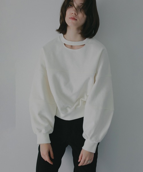 2026 Spring&Summer Collection ムーンスリットスウェットトップス MANOF定番の三日月型に空いたネックデザインのスウェットの新型が登場。 身頃に切り替えを入れ、MANOFらしい丸みと立体感のあるシルエットに仕上げました。 ヴィンテージ感あるほど良い厚みとかたさのあるドライタッチな風合いの生地を使用し、よりカジュアルで洗練された印象に。 スウェットのリラックス感はありながらも、鎖骨の覗くネックデザインがほんの少し女性らしさをプラス。 従来のスウェットよりもスタイリングの幅が広がるよう、着丈もショート丈にしています。 ※照明の関係により、実際よりも色味が違って見える場合がございます。 またパソコン・スマートフォンなどの環境により、若干製品と画像のカラーが異なる場合もございますので、予めご了承ください。 商品の色味は、商品拡大画像をご参照下さい。