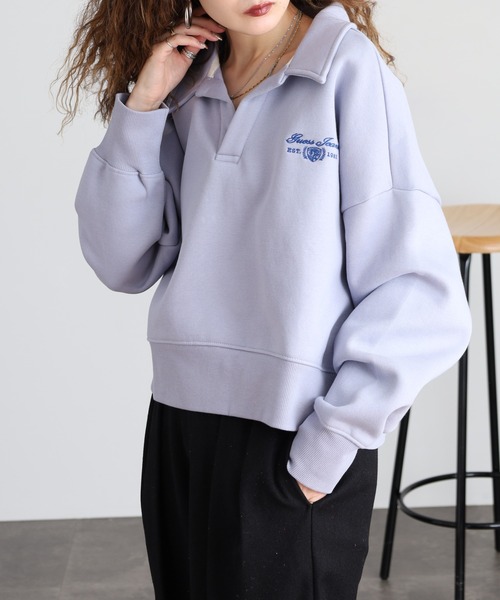 GUESS JEANS/ゲス ジーンズ■point胸元のエンブレム刺繍とスキッパー仕様のVネックが、クラシックさと抜け感を両立した一枚。クロップド丈がスタイルアップを叶え、リラックス感のある着心地ながら女性らしい印象に仕上がります。■fabric 綿82%の柔らかさとポリエステル18%の軽さが合わさり、デイリーに使いやすい快適なスウェット素材です。型崩れしにくく、長くきれいに着られます。■silhouette ゆとりのあるドロップショルダーとコンパクトなクロップド丈が特徴。抜け感のあるVネックが顔まわりをすっきり見せ、ハイウエストボトムと好相性のバランスに仕上がります。■coordinate ノッチドラペルのポロスウェットには、インナーに薄手のリブタンクを重ねてレイヤードの奥行きを作り、上からライトアウターとしてスエードタッチのショートジャケットを羽織って季節の変わり目らしいムードに仕上げます。ボトムはハイウエストのカーゴスカートを合わせて、クロップド丈との相性を活かしたスタイルアップ効果をプラス。足元には厚底のレザーローファーを取り入れて、カジュアルすぎない大人のバランスに整えます。肩にはコンパクトなナイロンショルダーを掛け、手元にはメタルバングルを添えてアクセントに。耳元には小ぶりのエンブレム風ピアスを合わせることで、トップスの刺繍とさりげなくリンクし、冬から春へ移り変わる時期にぴったりの軽やかなスタイリングが完成します。気分が自然と前向きになるような組み合わせです。『OKシーン』 通勤・通学・街歩き・買い物・カフェ・散歩・旅行・週末・デイリー・女子会・映画館・ランチ・ディナー・デート・外出・お出かけ・公園・食事・リラックス・仕事・ショッピング【GUESS JEANS】GUESSブランドの新ラインで、サステナブル技術「AIRWASH™」を導入した革新的なデニムブランドです。創業者の息子ニコライ・マルシアーノが手がけ、2024年に日本初上陸しました。GUESSの40年の歴史を踏まえつつ、次世代の価値観に合わせたデニムブランドとして誕生しました。展開アイテムはすべてオーガニック素材やリサイクル素材を使用してつくられたもので、ブランド全体を通して持続可能なものづくりが強く意識されています。日本人に合わせたサイズ設定でちょうど良いサイズ感で着こなせます。【お買いものをお楽しみいただく為の方法】 ★商品のお気に入り登録★・完売カラーの再入荷通知や、ラスト1点の通知、セールの通知も受け取ることができます。★ブランドのお気に入り登録★・新商品や再入荷など、いち早くブランドのお得な情報を受け取ることができます!