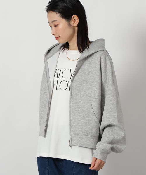 旬のショート丈とボリューム袖が好バランスなパーカー。上下で開閉できるダブルジップ仕様で、着こなしのアレンジが自在に楽しめます。【素材】モチっとした弾力とハリ感が特徴のダンボール素材を採用。軽量でシワになりにくく、つるっとした表面感でクリーンな印象を与えます。【スタイリング】パンツに合わせてカジュアルスタイルはもちろん、ワンピやスカートなど女性らしいアイテムと甘辛MIXでもおすすめ。ジップの下を開けてインナーを見せたり、肩を抜いて羽織ったりする着こなしが旬です。