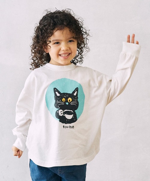 まるで絵本から飛び出してきたような黒猫がかわいい小さいお子様向けのFOVBOBロングTシャツ。丸い裾のラインがかわいいプリントTシャツ。-----透け感:無し伸縮性:ありポケット:無しサイズ・90cm・100cm 110cm 120cm 130cmMODEL 01 / 100cm / 16kg / 110サイズ着用MODEL 02 / 112cm / 19kg / 110サイズ着用MODEL 03 / 105cm / 15.4kg / 110サイズ着用