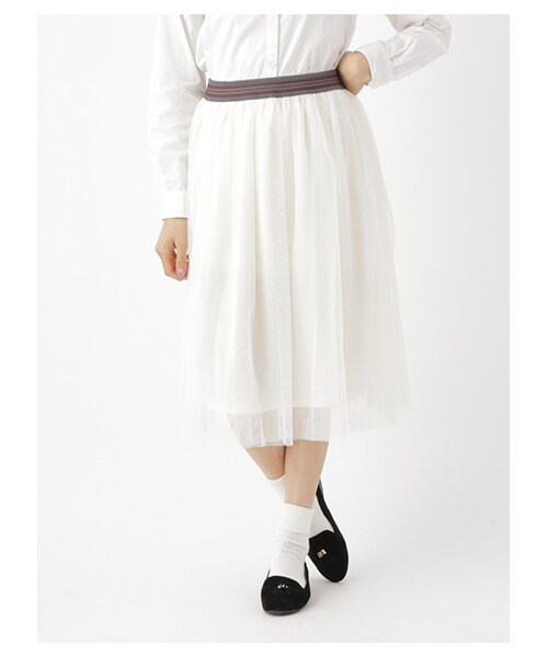 【大きな・小さなサイズ / クロコレ限定商品】 チュールミディ丈スカートです。チュール素材を使用してます。ウエストはライン入りのゴム仕様になっています。ヒップラインも可愛くカバーしてくれるふんわりチュールがポイントです。ボーダーやロゴトップスに合わせたスタイルがお勧めです。 その他のサイズコンシェルジュアイテムをみる