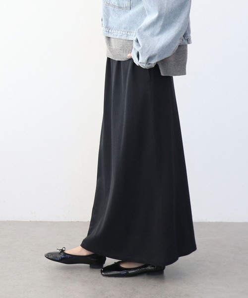 ジャージーロングスカートしなやかな落ち感が魅力のジャージーロングスカート。カジュアルな素材感でありながら、縦のラインを強調するシルエットで大人っぽく仕上げた一枚です。ウエストはゴムと紐仕様で快適な穿き心地を叶えつつ、後ろスリットが足さばきとさりげない抜け感をプラス。ベーシックでどんなスタイリングにも取り入れやすいアイテムです。■Point・柔らかく伸びのあるジャージー素材・ウエストはゴム+紐でストレスフリー・後ろスリット入りで動きやすい設計・カジュアルにもきれいめにも合わせやすいロング丈--------------------------------------透け感:なし裏地:なし伸縮性:ややありケア方法:手洗い可※お洗濯の際は洗濯表示を必ずご確認ください。--------------------------------------
