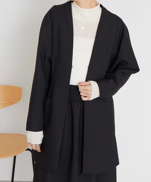 ■アイテム定番のジャケットスタイルに、さりげない個性を添えたマトンスリーブジャケット。肩まわりは緩やかなカーブを描き、袖口に向かって細くなるマトンスリーブが、羽織るだけで洗練された印象を演出します。バックスタイルはあえて肩幅をコンパクトに設計し、立体的なスリーブラインがより美しく映えるバランスに。ヒップやもも周りを自然にカバーする長めの着丈で、体型を選ばず取り入れやすいのも嬉しいポイントです。フロントはフック仕様、ノーカラーのVネックデザインで顔まわりはすっきりと上品に。同素材のフレアスカートと合わせたセットアップスタイルなら、オフィスシーンはもちろん、少し改まったお出かけやオケージョンにも対応します。いつものジャケットとは一味違う、新しいきれいめスタイルを楽しめる一着です。※こちらは《LIVETART》のタグがつきます。■素材・洗濯表示素材表地:ポリエステル63% レーヨン32% ポリウレタン5%裏地:ポリエステル100%洗濯表示:ドライクリーニング※着用時・洗濯時は、必ず取扱い表示・タグをご確認の上、お取り扱い下さい。----------------------------------伸縮性:表地ややあり・裏地なし光沢:なし厚み:ふつう透け感:なし裏地:ありポケット:ありファスナー:なし(フック仕様)----------------------------------《LIVETRT/リヴェタート》BEARDSLEYのインブランドLIVETART(リヴェタート) 美しい刺繍やレース、しなやかなフォルム、鮮やかな色彩、大胆なプリント。アートに触れるような心地よい緊張感であらたまった場所へも気負いなく身につけられる。日常と非日常をつなぐ、いつもより少し高揚感に包まれる服。《お取り扱い上のご注意》・タンブル乾燥不可《予約商品について》・サンプルの為、素材情報、洗濯表示については企画段階の情報を記載しております。公的機関での試験データ結果を受け、量産にあたり混率や洗濯方法の変更が発生する場合がございますので、ご了承くださいませ。・サンプルでの撮影、計測をしております。商品の仕様が一部変更になる場合がございます。・撮影サンプル品はブランドタグがついておりません。製品にはタグがつきますので、製品の表に縫い糸が見える場合がございます。・工場の生産の都合上、納期が変更になる場合がございます。検品や輸送の関係で、発送日が前後しますのでご了承ください。また、入荷状況により、お客様への発送が店頭販売より遅れる場合もございます。・店頭に陳列していた商品も含まれる場合がございます。《商品画像について》ご覧頂いている商品の写真につきましては、できるだけ実物の色に近くなるように努めておりますが お使いの環境(モニター、ブラウザ等)の違いにより、色の見え方が実物と若干異なる場合がございます。 予めご了承ください。《ハートをタップして商品のお気に入り登録》【ハートをタップ】登録カラーの商品の「残りわずか」「再入荷」「値下げ」通知を受け取ることができます。【各ショップアプリにてブランドフォロー】 新商品などの入荷情報、最新のニュースやお得な情報を受け取ることができます。