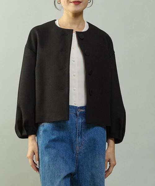 クラシカルな印象のノーカラージャケット。 どんなアイテムにも合わせやすいショート丈です。 袖にボリュームを持たせ、 まじめすぎない他とは差の付くシルエットに仕上げています。 ツイーディーな雰囲気を持たせたアセテート混の高品質な素材。 ポリエステルが入っているのでシワにも強くフォーマルな場面で活躍してくれます。 ハリと膨らみがありフォルムをきれいに見せてくれつつも、 固くならないので着心地もよいです。 同素材でスカートを展開しているのでセットアップ可。 (A0161FS153)入学式や卒業式などのセレモニー、 お仕事、お食事など幅広いシーンで使っていただけます。 ■透け感 なし ■伸縮性 ややあり ■光沢感 なし ■裏地 総裏 ■生地の厚さ 普通