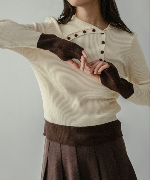 ![on:nue(オンニュ)の「【on:nue】[着用動画あり!] バイカラーボタンデザインサムホールニット(ニット/セーター・レディース・アイボリー/ブラック/イエロー/ブラウン・FREE)」の3枚目の写真](https://c.imgz.jp/719/101413719/101413719b_17_d_500.jpg)