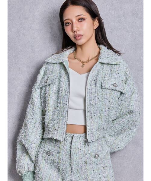 ■セットアップアイテムはこちら Symmetry GYDAラメツイードショートパンツ ■デザイン ラメ感のあるツイード生地を使用した春にぴったりの薄手ジャケットです。 胸元にはSymmetryGYDAのオリジナルビジューボタンがついていて高級感◎ きれいめ素材ですがジップデザインなので幅広く着用可能です。 ■スタイリング セットアップのボトムス合わせがおすすめです。 ■商品のお気に入り登録 再入荷通知やラスト1点、お得なプライスダウンの情報も受け取ることができます。 ぜひご登録ください◎ ・・・・・・・・・・・・・・・・・・・・・・ ※着用画像はフラッシュの加減で実際の製品と色味等が異なる場合がございますので、生地のズームアップ画像をご確認ください。 ※ご利用の端末画面の設定により実際の商品と色味が異なる場合がございます。