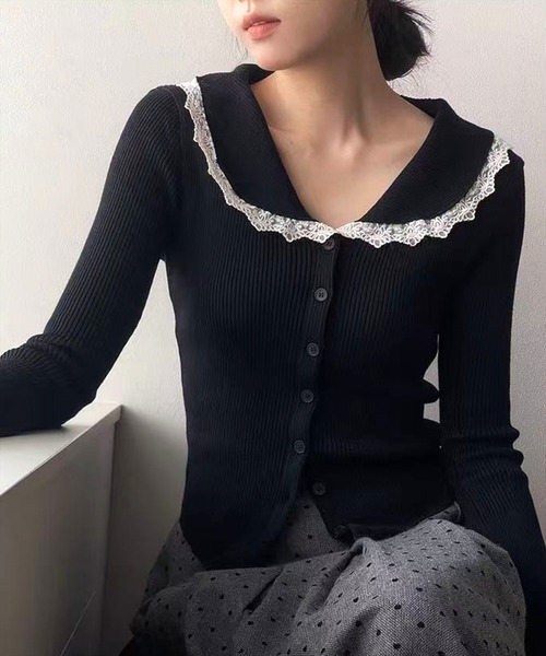 コーデの主役になるレースデザイン!レースカラーフレアスリーブニットトップス【デザイン】レースカラーが視線を惹く、上品ガーリーなニットトップス♪ 袖口にもレースをあしらい、手元まで華やかに◎ すらりと広がるフレアスリーブが動くたび可愛い印象をプラスし、シンプルなボトムにも映える主役級アイテムです♪【素材感】伸縮性のあるレーヨン素材伸縮性:あり/ 透け感:なし/ 裏地:なし 手洗いによる洗濯可 / ドライ・ウェットクリーニング可【コーディネート】ミニスカート合わせで甘さを引き立てても◎ デニムと合わせて大人かわいく外すのもおすすめです♪ コートを羽織った時にもレース襟が覗き、冬のおしゃれをぐっと女の子らしく仕上げてくれます。【※お取り扱い上のご注意】1:モニター環境等により実際の商品と多少色味が異なって表示される場合がございます。予めご了承下さい。2:屋外で撮影された商品は、天候により多少実際のカラーと異なる場合があります。商品のカラーはトルソー(マネキン)の商品画像をご参照ください。3:濃い色の商品は、お洗濯や摩擦等による移染にご注意ください。4:末永くご愛用頂く為に、アテンションタグ・洗濯ネームを必ずご確認の上、着用又はお取り扱い下さい。5:生産時期により、色、サイズ、デザイン、素材の質感が多少が異なる場合がございます。あらかじめ御了承下さいませ。
