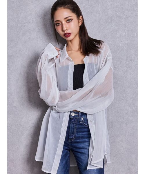 ■デザイン 毎年大人気のシアーシャツから今年はトレンドのランダムストライプが登場! GYDAらしいラメのランダムストライプなので気軽にトレンドを取り入れていただけます。 さらっと羽織りやすい程よいオーバーサイズで着回し力抜群の1枚です。 透け感があることで体型カバーも出来つつヘルシーな印象を演出してくれます。 ■スタイリング タイトワンピース合わせやデニムパンツ合わせが定番でおすすめなスタイリングです。 暖かくなってきたら肩掛けや、たすき掛けなどでアクセントとして取り入れていただけます。 ■商品のお気に入り登録 再入荷通知やラスト1点、お得なプライスダウンの情報も受け取ることができます。 ぜひご登録ください◎ ・・・・・・・・・・・・・・・・・・・・・・ ※着用画像はフラッシュの加減で実際の製品と色味等が異なる場合がございますので、生地のズームアップ画像をご確認ください。 ※ご利用の端末画面の設定により実際の商品と色味が異なる場合がございます。