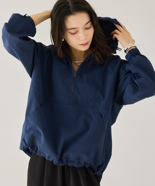 大人カジュアルコーデにおすすめのアノラックパーカー・定番だけどトレンド感もあるアノラック型のジャケット。・ハーフジッププルオーバーで、ぱっと被ってお召しいただけます。・部分的に使用しているゴールドの金具がポイント。・裾部分にはドロストコードが付いていて、絞ってシルエットの変化もお楽しみいただけます。・カジュアルさと女性らしさが感じられるバランスが魅力の一枚。【スタイリング】裾をキュッと絞って丸みを持たせてお召しいただくのも素敵です。まだ寒い時期はコートの下に重ねて、レイヤードするスタイイングがおすすめです。【素材】お手入れ方法:ハンドウォッシャブルコットンライクな肌触りが特徴のナイロン100%のナイロンタスランタフタ生地。軽さがあり、撥水性が付与された生地は、デイリーユースにぴったりな生地。---------------------------------透け感:やや透ける伸縮性:なし生地の厚さ:普通裏地:なし※こちらは参考情報となります。カラーにより多少の誤差がございます。※ベージュで計測しています。---------------------------------【原産国】中国お買い物をお得にもっと楽しく!上手な活用方法>>>▼商品のお気に入り登録▼完売カラーの再入荷通知や、ラスト1点の通知、プライスダウンしたセール通知も受け取ることができます。▼ブランドのお気に入り登録▼新作や再入荷等、いち早くブランドのお得な情報を受け取ることができます。【ご注意】※屋外の光や照明の当たり具合で、実際の商品の色味とカラー別画像の色味に若干の違いが発生する場合がございます。詳細画像と併せてご確認の上、ご注文いただきますようお願い致します。※サンプルにて撮影をしておりますので、実際の商品とは色味・仕様や加工・サイズ等が若干異なる場合がございます。予めご了承くださいませ。