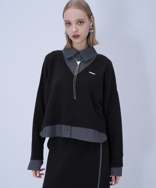 ーーーシャツとニットがドッキングされたレイヤード風ニットーーーpoint□シャツがドッキングされたデザインがポイントのトレンド感満載のニット□レイヤードしている様なデザインの為、一枚で着るだけで簡単におしゃれ度アップ◎□シャツは前後差があり、腰回りからお知りにかけてカバーができる□ニット部分はリヨセル混でシルクのような滑らかな肌触り□ハイゲージニットの為、季節の代わり目にも着やすい□緩めのサイズ感で楽に着用できるstyling骨格ナチュラル:ワイドパンツにゆったりとしたジャケットを羽織り、スニーカーやラフなレースアップブーツでカジュアルでトレンド感のあるスタイリングに◎骨格ウェーブ:Aラインのスカートを選び、前だけタックインをする事でメリハリのでる印象に。小ぶりのパールネックレスやビジューのイヤリングで女性らしさをプラス。骨格ストレート:スリムなボトムスにシャープラインのコートやブレザーを合わせると、スタイリッシュでモードな雰囲気に。ポインテッドトゥのローファーやアンクルブーツで、シャープで洗練された印象。※加工を施した画像を使用しております。実物と色味が異なる可能性があるため、色味は詳細後ろにある生地寄り画像を参考にお願いいたします。あらかじめご了承下さい。