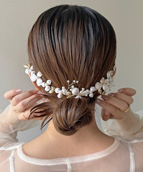 洗練された高見えオケージョンヘアアクセサリーフラワーモチーフと繊細なデザインがポイントのアイテム。後ろ姿が華やかになり写真映えするアイテムです♪どんなヘアスタイルにもつけるだけで簡単にヘアアレンジが完成◎[Point]〇華やかな印象に仕上がる豪華なヘアアクセサリー〇ヘアアレンジが苦手でも、両端のヘアピンで簡単に着用可能