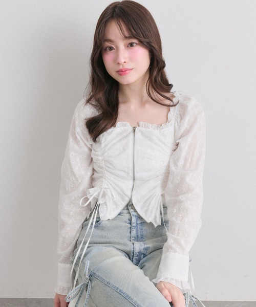 リボンとフリルが映えるドロストジップブラウス■デザイン・シンプルながらリボンやフリルで女の子らしさをプラスした、大人かわいいデザイン。・ドロストリボンをきゅっと絞ることでスタイルアップが叶います。・ダブルジップなので上下の開け具合を調節できて、抜け感をプラスできます。・スクエアネックでデコルテをきれいに見せ、顔まわりもすっきりした印象に。■カラー・オフ/イエロー/ブラックの3色展開■スタイリング・デニムパンツ合わせでこなれ感のある大人カジュアルに。・ミニスカートにローファーやブーツで王道ガーリーコーデが完成します。・インナーは見えてもかわいいレースやフリル付きのデザインがおすすめ。-----------------------------裏地:オフ/イエロー身頃部分あり、ブラックなし光沢感:なし透け感:なし伸縮性:なし手洗い:可能タンブラー乾燥:不可アイロン:150℃まで(ブラック不可)-----------------------------model:164cm※着用、お取り扱いの際は、商品についている品質表示とアテンションタグを必ずご確認下さい。※ご覧のモニター環境や撮影環境により実際の商品と多少色味が異なって見える場合がございます。ご理解の程よろしくお願いいたします。■お気に入り登録のおすすめ【気になるアイテムを登録】ハートをクリックしてお気に入りに登録すると完売カラーの再入荷やラスト1点の通知、セールの通知を受けとることができます。【ブランドを登録】新商品や再入荷、セール通知など、いち早くブランドの情報を受けとることができます。
