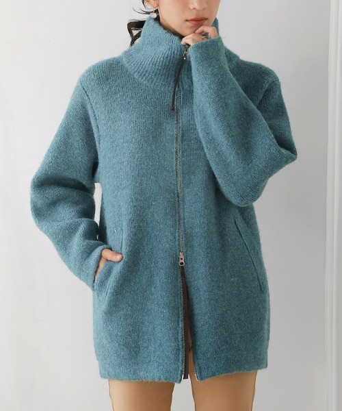 ■POINT ふわふわとした柔らかい肌触りが女性らしさを演出してくれるニットコート。ジップでカジュアルな雰囲気にしているのでデイリー使いにおススメ。ジップを変えると内側のテープカラーが映えるのでオープンで着用もおススメ。シルエットはソフトコクーンでさりげなく腰回りの気になる部分をカバーしてくれます。 ■FABRIC ミックスカラーで、単色のカラーニットにはない独特なふんわりとした立体感を演出。珍しいカラーでも、デザインはベーシックなのでどんなボトムスともスタイリングしやすいです。ウール混の柔らかい糸なのでチクチク感が無く、肌触りも良いです。 ………………… 透け感:なし 裏地:なし …………………