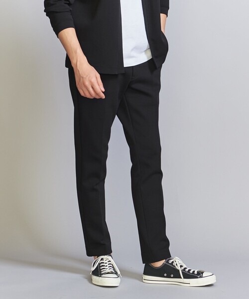 WEB限定 WARDROBE 『SMART』大人が求める¨スマートなルックス¨、¨快適な着心地¨の両立に拘ったワードローブ=SMART。アイテムごとに適した最適なシルエット。快適さに拘った機能的なファブリック。大人が求める要素がいい塩梅で調和した新感覚のワードローブです。新たにアンチバクテリア(抗菌・防臭)を付与したダンボールスウェットイージースラックス【セットアップ対応】■デザインヒップからワタリにかけては程よいゆとりがありつつ、裾にかけて強テーパードしたスマートなスキニーシルエット。すっきりとしたレッグラインがポイント。ジャスト丈なので裾上げなしで穿いていただけます。前開きでゴムシャーリングとスピンドルで、楽にウエスト調節でき、脇はスラッシュポケットと右脇側のみにファスナー開きのセキュリティーポケットがあり使い勝手の良さもポイントです。後身は両玉縁ポケットで、スポーティなスエットパンツとは違うスマートな見た目です。■素材毛羽を抑える紡績を施したキレイ目な表情と、ソフトで柔らかな風合い、コットンタッチのさらっとした質感。表裏がフラットな表情が特徴的な程よいキックバックのあるダンボールニット。今シーズンから生地で抗菌防臭加工を施して、ニオイの原因菌にも効果を発揮し嫌な臭いを抑制します。■コーディネートリラックス感を品の良く表現した抜け感のあるイージースラックス。クリーンな素材とシンプルなデザインなので幅広いスタイリングで着回せる一着です。ご家庭での水洗い洗濯が可能です。同素材でのジップパーカー、ジップブルゾン、カーディガンもご準備しておりますので、セットアップでの着こなしもできる一着です。■同素材のイージーパンツもご用意しています。(対象品番:12141000067)■同素材のジップパーカーもご用意しています。(対象品番:12271000006)■同素材のジップブルゾンもご用意しています。(対象品番:12271000007)■同素材のカーディガンもご用意しています。(対象品番:12271000008)※その他1カラーは杢のダークグレーです。============================裏地:なし透け感:なし生地の伸縮:適度な伸縮あり光沢感:なし生地の厚さ:中肉からやや厚手機能性:抗菌防臭着用想定シーズン:春、秋冬の3シーズンケア方法:洗濯機洗い可============================【注意事項】※商品を使用前に、タグ等に記載されている「取り扱い上の注意書き」、「洗濯表示」を必ずご確認ください。※商品画像は、光の当たり具合やパソコンなどの閲覧環境により、実際の色味と異なって見える場合がございます。予めご了承ください。※商品の色味の目安は、商品単体の画像をご参照ください。※画像の商品はサンプルです。 お問い合わせの際は、ユナイテッドアローズ カスタマーサービスデスクまで下記の品名/品番をお申し付け下さい。品名:byS DEO D/KNIT EASY SLKS 品番:12141000066
