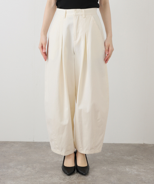 洗濯機使用可能/ウエストゴム【2025AW】SLOBE IENAPOINT・昨年大人気でしたトラウザーパンツが冬素材で登場!【素材の特徴】程よくハリのあるチノ素材。冬用に厚手の微起毛素材にリニューアルしました。【デザイン】深めのタックをいれたワイド型で、裾に向けて丸みをつけたカーブシルエット。タックが入っているので、腰回りに程よいゆとりができ体型カバーも叶います。【コーディネート】ボリュームのあるシルエットなので、トップスはコンパクトなものと合わせていただくのがおススメです。※こちらの商品はカラーによってアテンションが異なります。色あせ:ベージュのみ※取り扱いについては、商品についている品質表示でご確認ください。こちらの商品は、SLOBE IENAでの取り扱いになります。直接店舗へお問い合わせの際はSLOBE IENA店舗へお願い致します。※照明の関係により、実際よりも色味が違って見える場合があります。またパソコン・スマートフォンなどの環境により、若干製品と画像のカラーが異なる場合もございます。予めご了承ください。※商品の色味は、商品アップ画像をご参照ください。モデルサイズ:身長:163cm 着用サイズ:36本体:洗濯機洗い(弱)