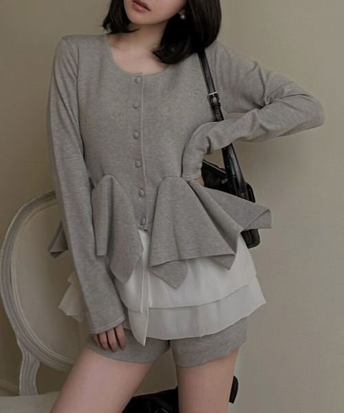 スタイリングに華やかさをもたらすランダムフリルヘムデザインが目を惹く主役級映えニットトップス。裾には上品な光沢感のあるシアー生地をドッキングすることで女性らしさをプラスし、表情豊かに仕上げました。ボディ部分は滑らかな風合いのニット素材を使用しており着心地も抜群◎お手持ちのアイテムとのコーディネートはもちろん、同素材のショートパンツ【74611037】とのセットアップ着用もおすすめです。**********************透け感:裾部分ややあり裏地:なし伸縮性:あり光沢感:なし生地の厚さ:普通ファスナー:なし付属品:なし**********************※商品画像はサンプルのため、色味やサイズ等の仕様に変更がある場合がございますので、予めご了承下さい。※取り扱いについては、商品についている品質表示でご確認ください。※こちらの商品は、ROYAL PARTYでの取り扱いになります。直接店舗へお問い合わせの際はROYAL PARTY店舗へお願い致します。※照明の関係により、実際よりも色味が違って見える場合があります。またパソコン・スマートフォンなどの環境により、若干製品と画像のカラーが異なる場合もございます。予めご了承ください。※サイト上のカラー名と、お届け商品に記載されているカラー名が異なる場合がございます。【商品のお気に入り登録】お気に入りアイテムの値下げ・再入荷・在庫1点などの通知を受け取ることができます。⇒カートの右のハートをクリック 【ブランドのお気に入り登録】新商品や再入荷、セール、クーポン配布などお得な情報を受け取ることができます。⇒上部ブランド名をクリック※お気に入りをするとZOZOのお気に入りアイテムページで簡単にcheckできて再検索不要です※