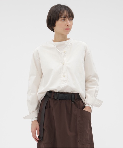 しなやかさとタフさをあわせ持つ、光沢を抑えた高密度コットンポプリンのシャツ。限界まで打ち込んだ超高密度ブロードならではの風合いで、洗い込むほどに深まる表情が魅力。三角マチや前後差をつけた着丈を取り入れたスウィングシャツをベースに、Aラインのリラックスフィットへ仕上げたデザイン。フロントの3つボタンと、前開き止まりに入るスラントカットがさりげないアクセント。 ※こちらはウィメンズの商品です。▽お気に入り登録<商品のお気に入り登録>完売カラーの再入荷通知や、ラスト1点の通知、セールの通知も受け取ることができます。<ブランドのお気に入り登録>新商品や再入荷など、いち早くブランドの情報を受け取ることができます。