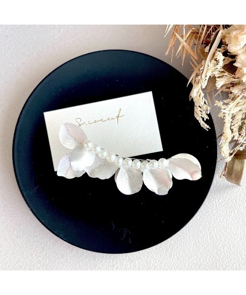 「ひと回り大きいサイズが欲しいです、、、」そんなお客様の声にお応えしてこの度、メタルフラワーブローチの大きいサイズを新発売いたしました。※小さいサイズの旧ブローチは別で掲載されているのであわせてそちらもチェックしていただけたら嬉しいです。ゴールドのメタルフラワーとパールで立体感のあるブローチに仕上げました。ゴールドなのでどの服装にも合わせやすいです。パールの部分はワイヤーと接着剤・レジンにて硬化しておりますが強い力に弱いため、丁寧にお取り扱いください。入園・入学式、卒園・卒業式等の節目の時期や、パーティー、結婚式、二次会など様々なシーンで活躍してくれるアイテムです。▼ S.coeuf (クーフ)について" 毎日身につけたい " をコンセプトに貴方の心に、日常に、寄り添うお花のアクセサリーを作ってます。▼お取扱いのご注意・ハンドメイド作品ですのでお取扱いの際は落下や強い力を与えないようご注意下さい。破損の原因になります。・淡水パール等、天然素材を使用したアクセサリーは大きさや艶などに個体差があります。・使用しているパーツはほとんどがインポートパーツ(海外製)となります。・透明度が高く経年劣化による黄変が少ないレジン液を使用しております。・長くご利用して頂くために、直射日光・高温多湿を避けて保管してください。・できる限りの検品はしておりますがハンドメイド作品なので気泡や埃等が入る場合がございます。