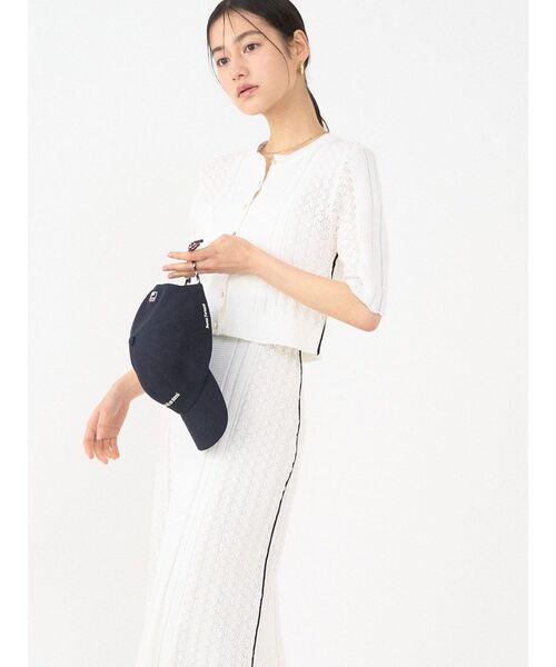 スポーツ要素を取れ入れたカジュアル×上品なレースのセットアップアイテム■デザインコメント軽く、マットな素材で脇に配色ラインを入れ、スポーティイメージにしたニットセットアップです。全面編み柄を入れてニットらしさを表現しています。金ボタンにすることで少し上品さもプラスしました。【修正コメント】金ボタンに変更します。袖口をリブに変更し綺麗にします。スカートの裾リブ段差を綺麗に改善できるか検討中です。前下がり+1.5センチ、天巾+2センチ予定です。■スタイリングポイント・セットで着用いただくことでレディなスタイリングが完成・別々でも着用できるのでスタイリングの幅が広がります・カーディガンはショート丈なので、ワンピースに合わせるのも〇・タイトなスカートはオーバーサイズのニットと合わせるのもおすすめ---------------------------------------------------透け感:あり裏地:あり(スカートのみ)生地の厚さ:普通洗濯:-伸縮性:ありポケット:なしジップ:なし---------------------------------------------------【 ZOZOTOWNでお買い物を楽しむ便利機能 】♡商品のお気に入り登録完売カラーの再入荷時、ラスト1点の時、セール開始時にお知らせします。予約アイテムが入荷して通常販売になった時もお知らせしてくれます!その他お得な通知も盛りだくさんです。 ♡ブランドのお気に入り登録新商品や再入荷、セール情報など、いち早くブランドのお得な情報を受け取ることができます。ぜひご活用ください!