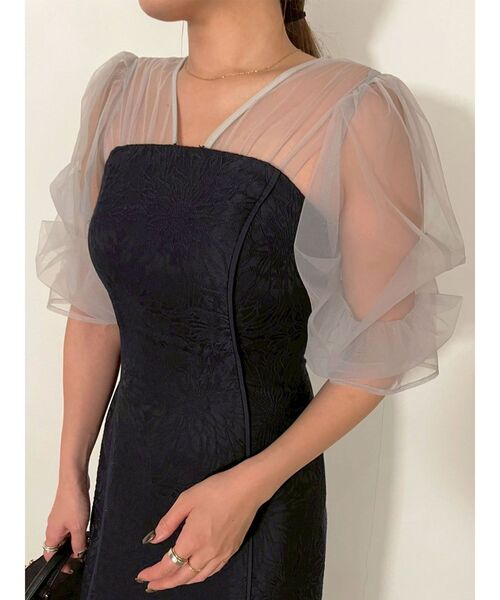 シアー×ボリューム袖と花柄ジャガードは、上品さと存在感を兼ね備えたエレガントな1枚 ■デザインコメント 上品な花柄のジャガード素材が目を引くIラインドレス。 シアー素材を使用したボリューム袖が華やかさを演出してくれます。 上品さと華やかさを兼ね備えたドレスです。 【修正コメント】 バスト部分の吊れ改善します。 ■スタイリングポイント ・1枚で着映えするワンピースなので、お気に入りのバッグやシューズでコーデを楽しんで ・トレンチコートを着たり、カーディガンと合わせるなど、羽織次第で印象も変えられるドレスです --------------------------------------------------- 透け感:あり 裏地:あり 生地の厚さ:普通 洗濯:- 伸縮性:なし ポケット:あり ジップ:あり 胸パッド:あり --------------------------------------------------- 【知って得する便利機能◎ 】 ■商品のお気に入り登録 再入荷時、ラスト1点の時、セール開始時にお知らせします。 ■ブランドのお気に入り登録 新商品やセール情報など、いち早くお得な情報をゲット ぜひご活用ください ※着用画像はフラッシュの加減で実際の製品と色味等が異なる場合がございますので、 生地のズームアップ画像をご確認ください。 ※ご利用の端末画面の設定により実際の商品と色味が異なる場合がございます。
