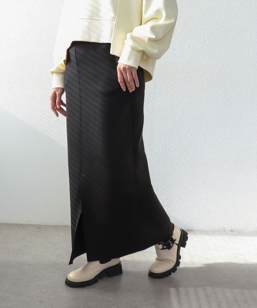 \人気のスカートが再入荷!/深めのサイドスリットで歩きやすく抜け感のあるロングスカート ハリのあるポンチ素材でシルエットをキレイにキープ。 カジュアルすぎず、きれいめにも着こなせる絶妙なバランスです。 ウエストゴム仕様&ポケット付きでデイリーにぴったり◎ シャツやブラウスをINしてきれいめ通勤スタイルや、 ロゴT合わせで休日カジュアルにも映える万能アイテムです。 スニーカーやフラットシューズとも相性抜群♪ -------------------------------------- 透け感:なし 裏地:なし 伸縮性:ややあり ケア方法:手洗い可 ※お洗濯の際は洗濯表示を必ずご確認ください。 --------------------------------------