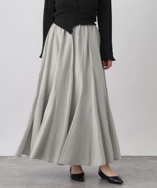 デイリーユースにもぴったり女性らしいシルエットが魅力のフレアスカートーーー【素材】ナチュラルな表面感と軽さが特徴的な素材を使用。ドライな質感で履き心地のいいアイテムです。【デザイン】裾に向かって広がるフレアシルエットが女性らしい揺れ感を演出するロングスカート。普段使いからちょっとしたお出かけまで幅広く活躍するアイテムです。デイリー使いにも最適な3色展開になっています。ーーー【スタイリング】コンパクトなトップスと合わせてメリハリのあるスタイリングがおすすめです。
