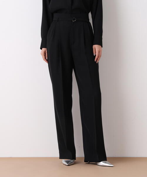 程よい肉感と美しいドレープ性を兼ね備えたダブルサテンを使用したパンツウエストには2タックを入れ、程よいゆとりを持たせながらも、センタープレスが縦のラインを強調し、シャープですっきりとしたシルエットに仕上げています。さらに、ウエストに別生地を配することで、ウエストまわりをすっきりとした印象に整えた上品な一本です。 【素材説明】 膨らみのある二重織サテン素材。弾力のあるほどよいハリ感と、すっきりとした表面のマットな質感が特徴です。 【商品特性】 ストレッチ性あり/ショート丈の裏地付き/前ポケット×2.後ポケット×2/前ファスナーあき/かかとくらいの丈◆お買い物をよりお楽しみいただくために◆・「商品のお気に入り登録」で完売カラーの再入荷やラスト1点、セール通知を受け取ことができます。・「ブランドのお気に入り登録」で新商品の入荷情報など、いち早く受け取ることができます。
