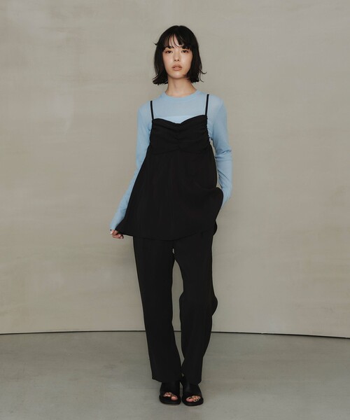 レイヤード風デザインのキャミサロペット■デザインセットアップで着用しているようなキャミ型サロペット。胸元のギャザーディティールとトップス部分の裾が軽やかに揺れるフェミニンなデザイン。オンオフ着まわしやすい素材感も魅力です。■素材パウダリーな表面感と程よい落ち感が今年らしく着られる素材。透けにくくも軽やかな絶妙な肉感で、春先から夏まで長く着用いただけます。サロペットスタイルが大人っぽく決まるシックな2色展開。■コーディネートシアーニットやロンTなど軽やかなインナー合わせがおすすめ。ジャケットを羽織ったスタイルも胸元にさりげなくポイントが映えるデザインで仕上げています。#春服,#春物,#夏服,#夏物,#26SS,#サロペット,#レイヤード,#オールインワン,#ワンピース============================裏地:なし透け感:なし伸縮:なし光沢感:なしケア方法:手洗い可============================< EMMEL REFINES(エメル リファインズ) >Pleasure ~今を楽しみ、変化を楽しむ~EMMEL REFINESは変化していく時代やトレンドを恐れなく前向きに楽しみ、今に満足せず常に自分を更新していきたい、自分らしさを表現したい女性に向けたブランドです。女性の共感を大切に、時代にフィットした新しいスタイルを提案します。【注意事項】※画像の商品はサンプルです。※商品に「取り扱い上の注意書き」、「洗濯表示」がございます場合は、使用前に必ずご確認ください。※商品画像は、光の当たり具合やパソコンなどの閲覧環境により、実際の色味と異なって見える場合がございます。あらかじめご了承ください。※商品の色味の目安は、商品単体の画像をご参照ください。お問い合わせの際は、ユナイテッドアローズ カスタマーサービスデスクまで下記の品名/品番をお申し付けください。品名:EM レイヤード CAMI サロペ 品番:66266000004