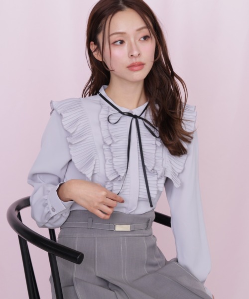 繊細なプリーツとフリルを贅沢にあしらったフェミニンな雰囲気のブラウス軽やかな揺れ感が女性らしく、ジャンスカやスカートとも相性抜群。ほどよい甘さで大人でも着やすく、オフィスにもデートにも活躍してくれます。コーディネートに取り入れるだけで華やかさをプラスできるアイテムです。※撮影時照明の関係により、色味が違って見える場合がございます。またパソコン・スマートフォンなどの環境により、若干製品と画像のカラーが異なる場合もございます。予めご了承ください。商品の色味は、商品単品画像をご参照下さい。※商品画像はサンプルのため、色味やサイズ等の仕様に変更がある場合がございますので、予めご了承ください。◆お買い物をよりお楽しみいただくために◆・「商品のお気に入り登録」で完売カラーの再入荷やラスト1点、セール通知を受け取ることができます。・「ブランドのお気に入り登録」で新商品の入荷情報など、いち早く受け取ることができます。