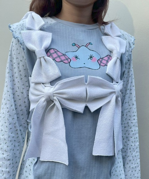 小花柄のフライス生地と肌触りの良いテレコ生地を使用したレイヤードトップス。 フロントにプリントされた、イラストレーターあきらんど氏描き下ろしのキュートなイラストがポイント。 袖口や裾、切り替え部分は各カラーによって配色が異なるメロー仕様に。 同カラー展開のパンツと合わせたコーディネートもおすすめです。 ―――――――――――――― あきらんど カラフルでのびのび、 「かわいい」と「たのしい」をぎゅっと詰め込んだ ハッピーでポップなイラストを描くイラストレーター。 オリジナルキャラクターを中心に、 毎日がちょっと楽しくなるような作品を制作している。 ―――――――――――――― ・・・・・・・・・・・・・・・・・・・・・・ ・透け感:なし ・伸縮性:あり ・生地の厚さ:普通 ・裏地:なし ・・・・・・・・・・・・・・・・・・・・・・ ・ピンク、ライトブルー、ヘザーグレーの4色展開 #カジュアル#ガーリー#羽#エンジェル#星#花柄#レイヤード#キャンスト#キャンスパ#CND ●Candy Stripper/キャンディストリッパー● -BRAND CONCEPT- NO RULE, NO GENRE, NO AGE 年齢や性別にとらわれず、自由に自分を表現出来る服 【お買い物をもっとお楽しみ頂くために】 ▼商品のお気に入り登録▼完売カラーの再入荷通知や、ラスト1点通知、 プライスダウンしたセール通知も受け取れる♪ ▼ブランドのお気に入り登録▼ 新作や再入荷等、いち早くブランドのお得な情報が受け取れる♪