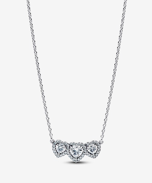 愛で輝いて。スターリングシルバーのコリエには、輝くハローに囲まれた3粒のハートシェイプのキュービックジルコニアが完璧なハーモニーでつながっています。固定ペンダントと、留め具の近くにゆれ動く繊細なストーンがあしらわれています。 付属品:ジュエリーボックス(1点)※ボックスのパッケージについては予告なくデザイン・仕様が変更になる場合があります。※付属のジュエリーボックスのサイズをお選びいただくことは出来ません。 <Pandoraのサステナビリティ> Pandoraはサステナビリティを強力に推進し、ジュエリーの材料として100%リサイクルした銀と金を使用しています。また、ショッパーなどの紙資材には適切に管理された森林から生産されたFSC®認証紙を使用しており、100%リサイクルが可能です。 ■保証について ZOZO納品書もしくは注文履歴画面にて確認できる購入日より1年間 ※ガラス、レザー繊維製品は6か月間 ★商品のお気に入り登録→【カートに入れる】右側の♡をクリック 完売カラーの再入荷通知や、ラスト1点の通知、セールの通知も受け取ることができます。 ★ブランドのお気に入り登録→ブランドタグのページからお気に入りをクリック 新作商品や再入荷などブランドのお得な情報を受け取ることができます。