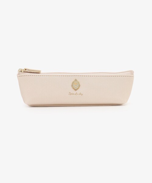 メタルカラーのチャームをフロントにあしらったペンケースです。 繊細なフラワーモチーフにストーン調のパーツを組み合わせて、高級感のあるデザインに仕上げました。落ち着いたカラーで普段使いしやすく、ギフトとしてもおすすめのアイテムです。 持ち運びに便利なコンパクトサイズながら、底マチがしっかりとあるため、見た目以上の収納力を発揮。デスクの上に置いておいても邪魔にならず、オフィスやご自宅などシーンを問わずに活躍します。 *箔加工製品は、摩擦や使用を繰り返すことにより表面の光沢が低下し薄くなることがあります。*特性上、避けることができないため予めご了承ください。