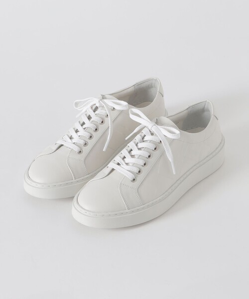 【シンプルなチェックエンボスがポイントのレザースニーカー】ソフトな質感のスムースレザーを使用することで、着用時のフィット感や履き心地に拘ったスニーカーです。アイコニックなクレストブリッジチェックをエンボス加工した付加価値の高い1足です。シンプルで様々なスタイルに合わせやすいデザインです。またオパンケ製法で仕上げているため、ステッチがアクセントになるだけでなく、足裏のフィット感や歩きやすさ、疲れにくさを兼ね備えています。アッパー縫製から最終加工まで国内ですべて行っている日本製のレザースニーカーです。上質なレザーを使用し、熟練の職人の手によって丁寧に仕立てられています。
