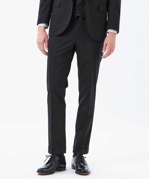 高いストレッチ性のあるウール混トロピカル素材を使用したセットアップトラウザーズ【デザイン】定番のスリムフィットモデル(ヒザ裏付き)。すっきりとしたテーパードシルエットです。【素材】ウールと合繊をブレンドし、高いストレッチ性を実現させたトロピカル素材。ウール混で上品な質感と快適さを両立。ウールとポリエステルを丁寧に混紡し、ヨコに伸縮性に優れた繊維を混入することで、ウォッシャブルとストレッチ性、着心地の良さを実現しています。生地に適度な張りと膨らみがあり、高級感ある光沢を醸し出しています。【機能性】ウォッシャブル*同素材のジャケット(品番:H1E23750)、ベスト(品番:H1F50750)の展開もございますので、セットアップや3ピースとしても着用いただけます。ビジネスマンが出張を快適に過ごすためのアイテムである「トロッター」シリーズ。マッキントッシュ フィロソフィーならではのファンクションへのアプローチを本格志向のものづくりに融合させたコレクションです。おすすめ着用期間:春※こちらの商品は着用前に裾直しが必要になります。※サイズについては、仕様書のサイズを記載しており、多少の誤差が出る場合がございます。※この商品はサンプルでの撮影を行っています。実際の商品とイメージ、仕様が異なる場合がございます。