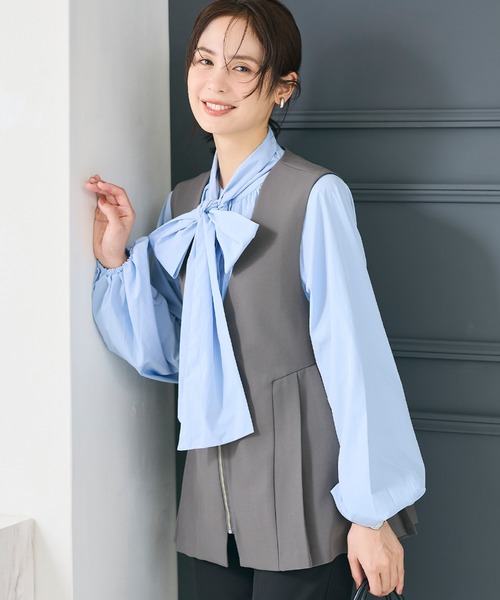 ウエストタックでふんわり広がるペプラムベスト ■デザイン・シルエット ウエスト部分に施したタックから広がるペプラムシルエットが、立体感と女性らしさを演出。 腰まわりを自然にカバーしつつ、全体をすっきりと見せてくれるデザインです。 無地デザインでシンプルながら、さりげない立体感がコーディネートに上品なアクセントをプラスします。 ■素材 ・程よいハリ感のある素材で、シルエットをきれいにキープ ・シワになりにくく、デイリー使いしやすいのもポイント ■コーディネート ブラウスやカットソーの上に重ねるだけで、きれいめなスタイリングに。 タイトスカートと合わせれば女性らしいシルエットに、ワイドパンツやテーパードパンツと合わせればバランスの取れた大人カジュアルに。 落ち着いたカラーでオンオフ問わず活躍します。 伸縮性:なし 透け感:なし 裏地:あり ポケット:なし 生地感:ハリ感のあるポリエステル生地 注意点:Blackのみ、素材の特性上、色落ちしやすいのでご注意下さい。 お洗濯方法によっては縮みや色あせの可能性あり。乾燥機等のご使用はお控え下さい。 トップス ペプラム タック フレア セレモニー フォーマル 体型カバー オフィス シンプル きれいめ 通勤 ウォッシャブル 26ss コカ COCA coca COCA coca