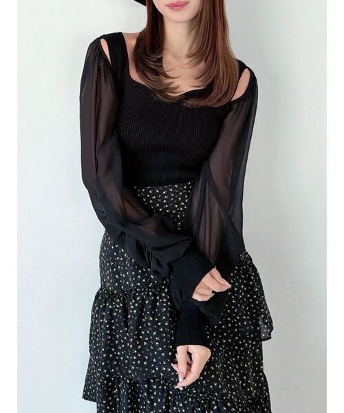 シアースリーブの透け感が春らしいニットトップス ▽デザイン▽ 細身なのに窮屈感のない伸縮性の高いリブニットトップス。 肩幅の華奢見せが叶う控えめな肌見せがポイントです。袖をシアーニットにすることで柔らかで抜け感のあるレディな雰囲気に仕上げました。 ▽カラー▽ 白、黒、ピンクの3色展開。 ▽スタイリング▽ デニムでカジュアルダウンするのはもちろん、マーメイドスカートやフレアスカートを合わせてとことんフェミニンに着こなすのもおすすめ◎
