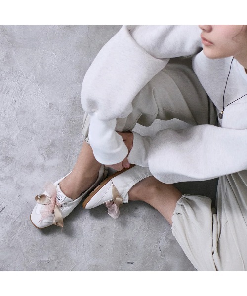 フェミニンで快適なバレエスニーカー。甲を深めに覆うソフトなアッパーと、ふんわりとしたクッションインソールが包み込まれるような履き心地を叶えます。 気分やコーディネートに合わせて表情を変えられる、2タイプのリボン付き。 可憐さの中に程よいカジュアル感を添えた、毎日履きたくなる一足です。 ▼MODE ET JACOMO モードエジャコモ▼ 大人の女性に向け物質的なものだけでなく、心まで満たすことを追求したハイクリエイションブランド 『凛としてしなやかに、自分自身の内なる輝きをひきたてるクール&ビューティーシューズ』 ※カップインソール ※2E ※リボンはサテンとオーガンジーの2組付き ※mode et jacoomo モードエジャコモ ■素材:SVK・生地(箔加工)/その他・合成皮革