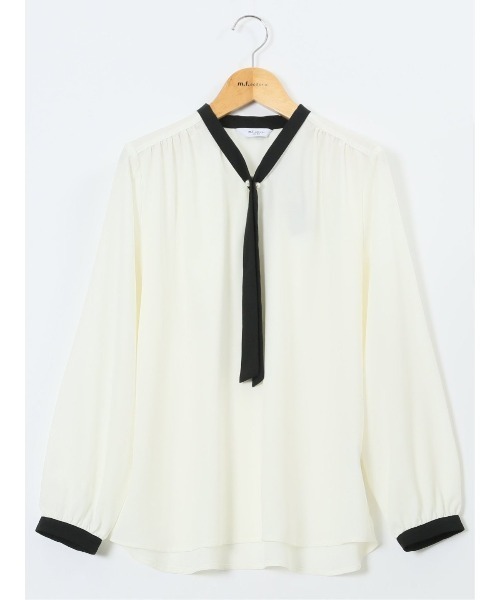 【ストレッチ イージーケア】m.f.エディトリアル レディース パールボウタイ 長袖プルオーバーブラウス