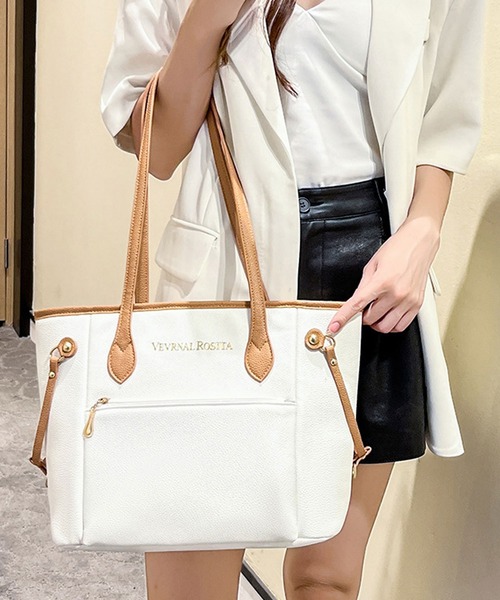 【おしゃれな配色レディースバッグ】大人気、レザーライクバイカラートートバッグ/ビジネスバッグ。美しいシボ感が上品さをプラスするシュリンクPUレザーを使用。フロントにはゴールドロゴを配置しデザインのアクセントに。iPadや500mlペットボトル、ポーチ、お財布、スマホなどが入る大き目サイズ!バッグ全体に厚めのクッションを内蔵し、iPadやノートPCなどのデバイス機器を外からの衝撃から守ります。オンオフ兼用でキレイめにもカジュアルにも合わせやすい、可愛いトートバッグです。[仕様]・外側:ファスナーポケット×1・メイン口:ファスナー開閉・内側:ファスナーポケット×1[サイズ/重さ]高さ26cm/下横幅30cm/上横幅39cm/奥行(底マチ)10cm/持ち手高さ24cm400g[素材]合成皮革おすすめのシーン通勤 オフィス 通学 デート ディナー オケージョン フォーマル サブバッグ、旅行、レジャーなど幅広くお使いいただけます。クリスマスやお誕生日などのプレゼントやギフトなどにも最適な仕上がりです。▼ブランド 【florge】 -フロージュ-「着る人の心や体を癒し包む服、何気ない日常をちょっとだけ特別な日に変えられるアクセサリー」をテーマに、おしゃれでかわいい商品からおとなめオフィスに使える商品までトレンドの人気アイテムをご提案するレディースブランドです。プチプラ商品を多く取り扱っているのも嬉しいポイント♪画像付近のブランド名からぜひご覧ください。