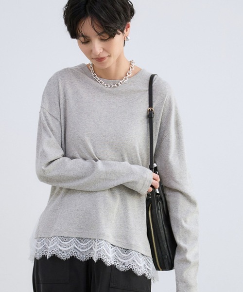 しっとり柔らかく着心地の良い、裾レースが華やかなロンT・身頃はコンパクトめでレイヤードしやすいサイズ感・あえて脇を大きく開けたデザインでニットの下に着た時も動きが出て◎・寒い日のインナーとしても活躍【スタイリング】ボトムスを選ばずに、ロングシーズン着ていただけるアイテムです。一枚着としてはもちろん、肌寒い時期はインナーとしても◎「598518:サイドスリットニット」に重ねるバランスがおすすめです。ニットやカーデ、スウェットと重ねて、オフィスコーデのジャケットやブルゾンのインにも幅広く活躍します。【素材】お手入れ方法:マシンウォッシャブルしっとり柔らかいコットンのフライス素材。伸びやかなタッチで、インナー使いしやすいです。裾にもストレッチレースを付けていて、着心地よくレイヤードを楽しめます。【原産国】中国お買い物をお得にもっと楽しく!上手な活用方法>>>▼商品のお気に入り登録▼完売カラーの再入荷通知や、ラスト1点の通知、プライスダウンしたセール通知も受け取ることができます。▼ブランドのお気に入り登録▼新作や再入荷等、いち早くブランドのお得な情報を受け取ることができます。【ご注意】※屋外の光や照明の当たり具合で、実際の商品の色味とカラー別画像の色味に若干の違いが発生する場合がございます。 詳細画像と併せてご確認の上、ご注文いただきますようお願い致します。※サンプルにて撮影をしておりますので、 実際の商品とは色味・仕様や加工・サイズ等が若干異なる場合がございます。 予めご了承くださいませ。