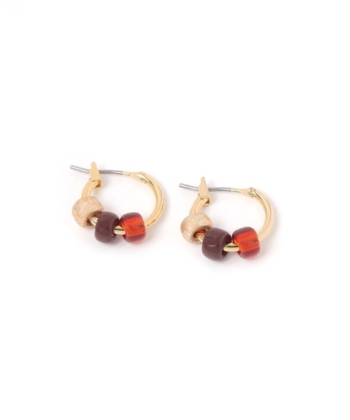 エッジの効いた個性派アクセ大粒のビーズが主役のフープピアス。どの角度から見ても可愛いデザインで、さりげなくお顔まわりを彩ってくれます。キャッチレスで着脱が楽なのもうれしいポイント。